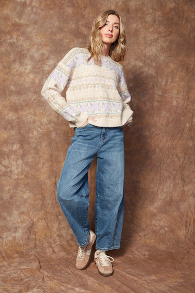 This super cute crewneck pullover blends soft comfort with a playful pastel Fair Isle print. Featuring dropped shoulders for a relaxed vibe, it’s t...