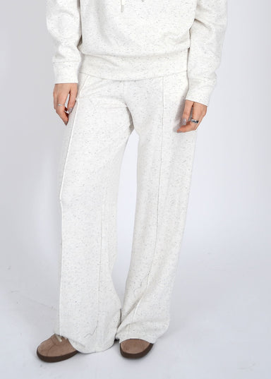 Sink into playful comfort with these soft knit pull-on pants in ecru melange. Featuring a relaxed straight-leg fit, an elastic waistband, and an ad...