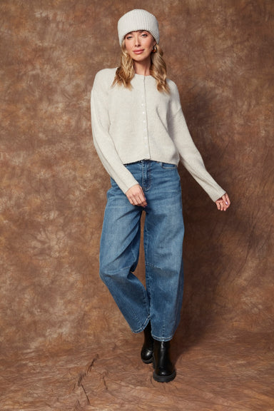 Cozy up in this adorable button-up cardigan featuring a classic crew neck and irresistibly soft fabric in a chic greige shade. Perfect for layering...