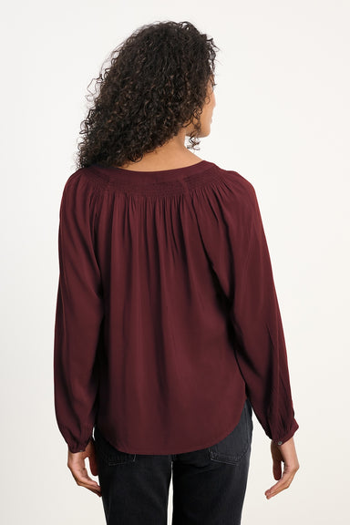 Crafted from soft rayon challis, this top features a subtle sheen with smocked shoulder detailing and delicate split accents. A round neckline and ...