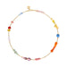 Crafted with freshwater pearls, stone beads, glass beads, lava stones, crystal, and 14k gold plated brass. 17" long.