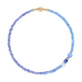 Crafted with glass beads, crystal beads, and 14k gold plated brass. 7" long.