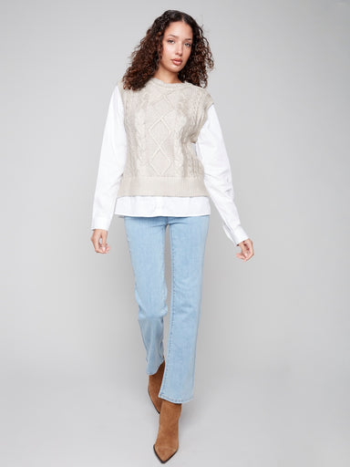Get the layered look effortlessly with the Charlie B Fooler Vest in pretty light gold. Designed to mimic a white shirt underneath, this playful ves...