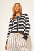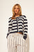 Elevate your everyday style with this charming crew neck cardigan featuring classic stripes and a convenient button-up front. Cut to a flattering waist length, it's the perfect layering piece for transitional weather or casual sophistication. Versatile enough to dress up or down, this striped cardi pairs effortlessly with your favorite basics for an instantly polished look. A wardrobe essential that delivers both comfort and timeless appeal.