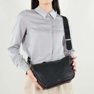 Recycled Textured Vegan LeatherZipped Main OpeningPadded Shoulder Strap on hooksRemoavble and Adjustable Webbing Crossbody Handle Interior:Signatur...