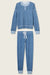 Dreamy and oh-so darling, this pajama set is crafted from soft peachy jersey with a ditsy floral print on a blue backdrop, finished with striped trim. Its easy fit keeps things comfy and sweet—just right for cozy nights in.