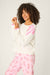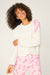 Top off your holiday lounging with this fuzzy ivory sweater, stamped with a pink bow graphic at the shoulder. The crewneck design, finished with pink cuff trim, pairs perfectly with flannel bottoms for cozy nights or with jeans for festive outings.