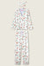 Paw-sitively cozy and snow much fun, this three-piece flannel set is made from soft cotton in a classic twill weave, complete with a button-front top, relaxed drawstring pants, and a matching headband. The winter-white backdrop is scattered with playful pups skiing, sledding, and tubing through the trees, finished with contrast piping and a cheeky cuff that reads “Sleigh All Day.” Perfect for snow days, couch days, and snoozing after all the fun.