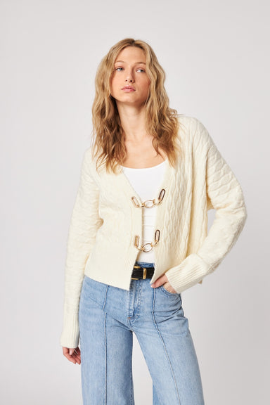 Brighten up your look with the playful John & Jenn Emile Cardi in Alabaster. This beautiful cream cardigan features fun clasps that add a quirk...