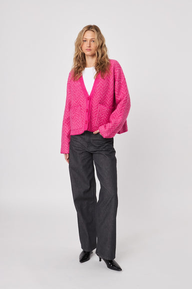 Get cozy in the cute oversized John & Jenn Ricky Cardi in Cerise Herringbone. Its playful pink herringbone print and relaxed fit make it the pe...