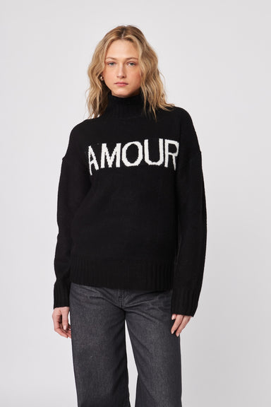 Add a touch of whimsy to your wardrobe with the John & Jenn Ambrose Sweater in Blanc de Noir. This sleek black crewneck features a fun fuzzy bo...