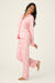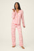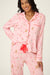 Women’s Western print pajama set in cotton-modal jersey featuring a relaxed button-down top with contrast piping and matching full-length drawstring pants with Western-inspired motifs.