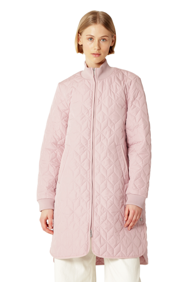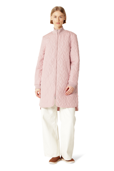 Designed for in-between seasons, this long padded quilt jacket blends feminine elegance with everyday functionality. Crafted in a soft, subtly lust...