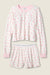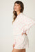 Built for slow starts and stop-and-smell-the-roses kind of days, this sweet floral PJ set is made for lazy mornings and hours of lounging. The long-sleeve cropped top features pink ribbed trim and a soft ivory backdrop covered in dainty rosebuds, paired with coordinating boxer-style shorts finished with an elastic logo waistband and faux button fly. The relaxed silhouette makes it feel laid-back, while the soft waffle texture adds just the right touch of cozy.