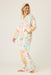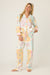 Women’s 3-piece pajama set in natural card-game print. Includes button-up shirt, relaxed-fit pants, and printed headband. Made from 100% cotton twill.