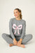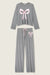 Celebrate cozy season in this grey pajama set, made from soft jersey with a cropped long sleeve top and relaxed drawstring pants. A sweet pink bow graphic makes it feel like the best gift under the tree—ideal for festive nights or lazy mornings.