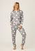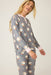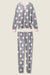 A little cinnamon, a little cream, and a whole lot of cozy. This dreamy butter jersey PJ set is sprinkled with latte cups, pink hearts, and swirls of whipped topping—like your favorite morning pick-me-up in lounge form. The long-sleeve top features a faux button placket and delicate pink-and-white striped trim at the collar and cuffs. The matching joggers are finished with a pink-striped waistband, white drawstring with pink thread detailing, and side pockets for sweet, lounge-all-day ease.
