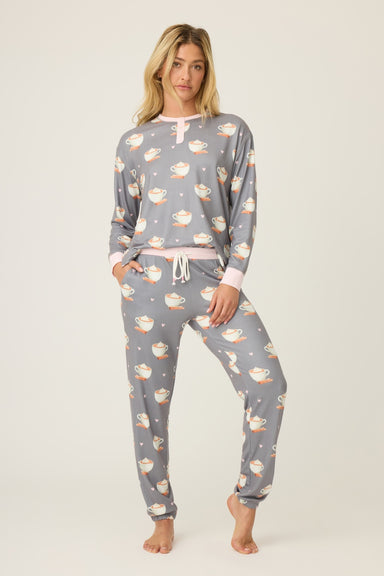A little cinnamon, a little cream, and a whole lot of cozy. This dreamy butter jersey PJ set is sprinkled with latte cups, pink hearts, and swirls ...