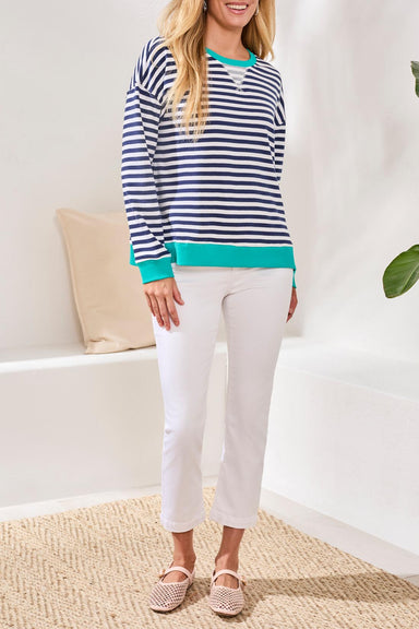 Effortless style meets everyday comfort in this loose-fit striped tee. The classic navy and red stripe pattern brings timeless appeal to your casua...