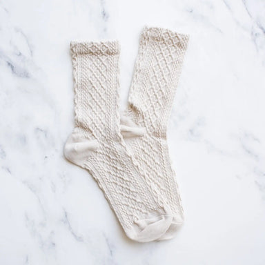 The Picnic Mid Crew Socks are a classic take on the traditional cottage fashion. Featuring a mini check knitting pattern and vintage designs, they ...