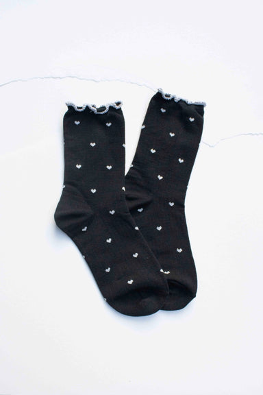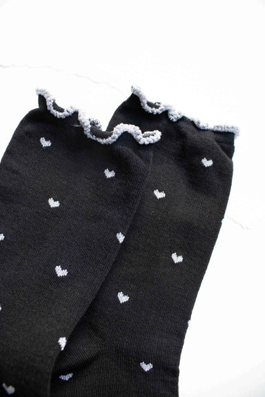Sweet and stylish, our Mini Heart Ruffle Socks are designed with dainty heart patterns and a playful lettuce-edge trim. Made from a soft cotton ble...
