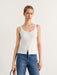 The Meilleur Moment Button Tank in white is your go-to layering piece for any season. Featuring a flattering scoop neck and convenient button-up front, this sleek tank offers endless styling possibilities. Wear it solo on warm days, layer it under sheer tops, or button it partially for a modern, relaxed vibe. The crisp white hue pairs effortlessly with everything in your closet, making it an indispensable staple that works as hard as your lifestyle demands.