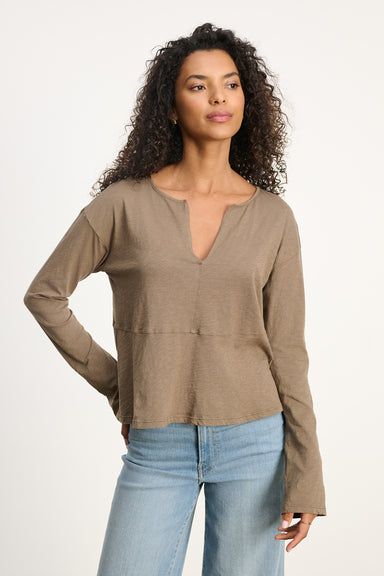 Meet the Velvet Lyla Top in Mulch—a timeless essential that's anything but boring! This chic v-neck blouse in rich dark brown is crafted from light...