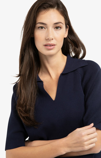 This refined sweater is crafted from a soft knit and features an open V-neckline with an elegant collar. The short sleeves and regular fit provide ...